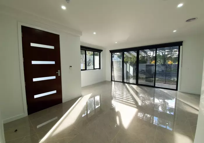 Downstairs, you’ll find a generous bedroom and a bathroom.  The home features a light-filled separate lounge, ideal for relaxing or entertaining, along with a spacious open-plan living and dining area that seamlessly flows to the kitchen.